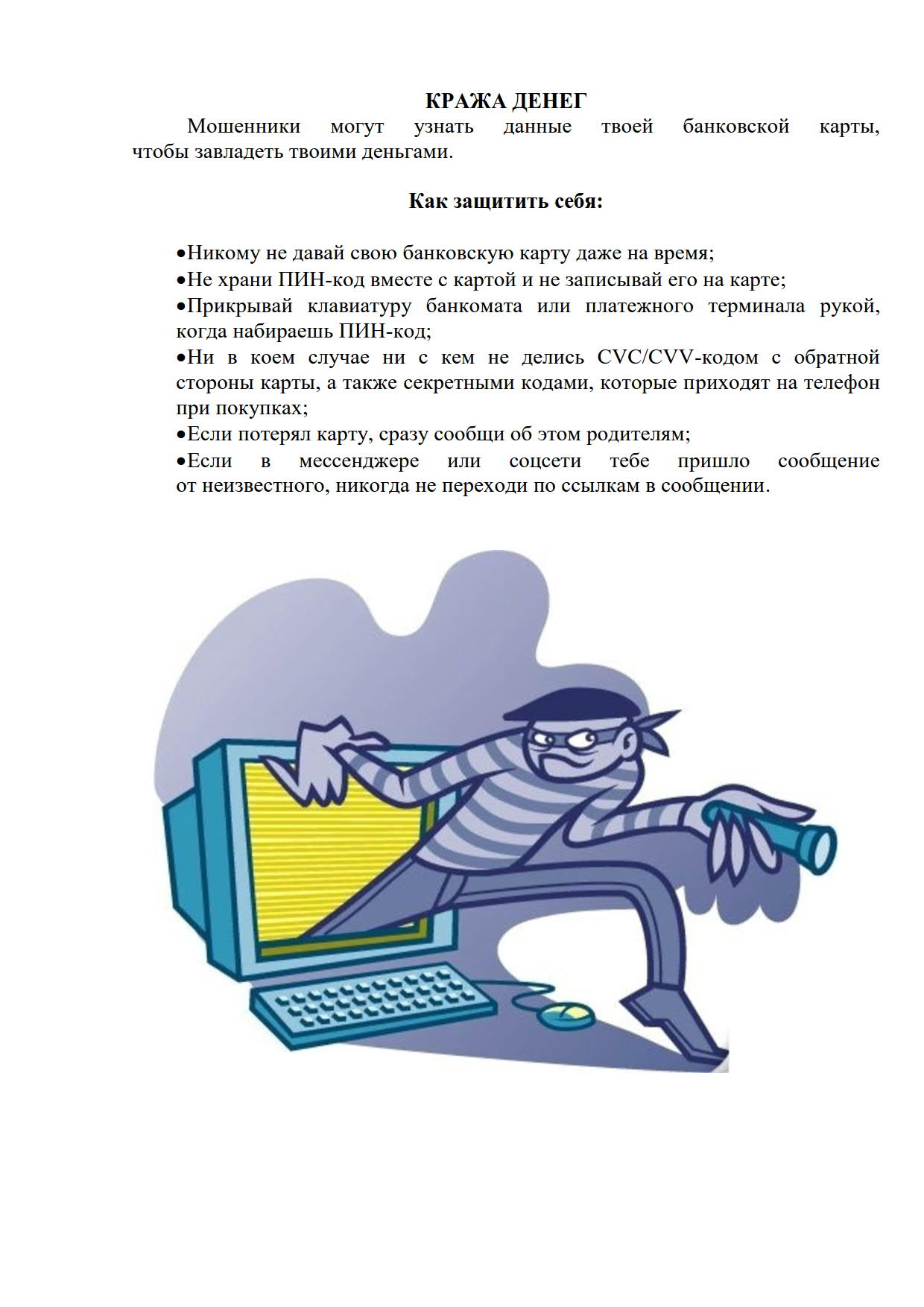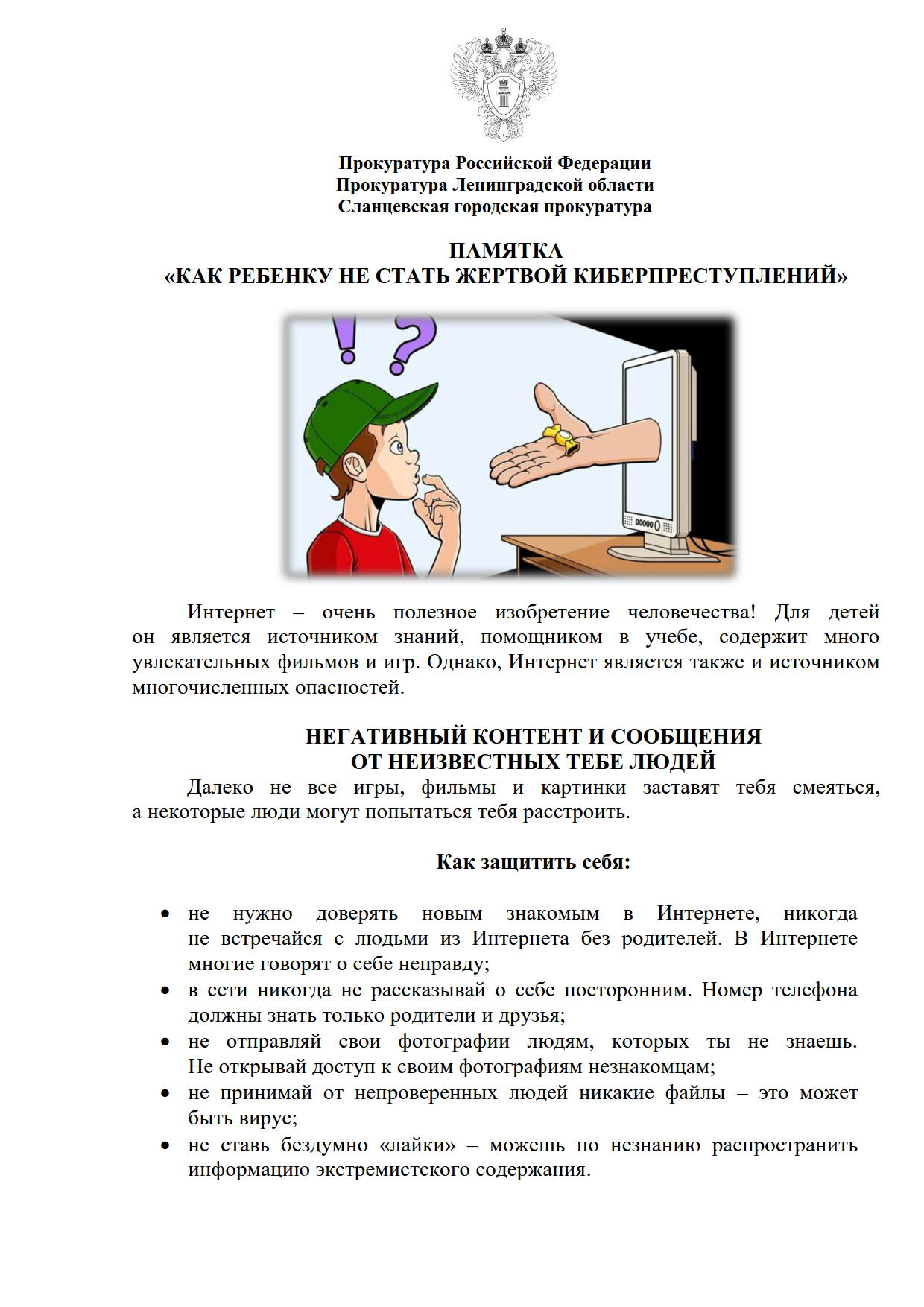 ПАМЯТКА «КАК РЕБЕНКУ НЕ СТАТЬ ЖЕРТВОЙ КИБЕРПРЕСТУПЛЕНИЙ» Опубликовано 30.06.2025 в рубрике Прокуратура